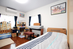 お子さまに個室を!とお考えになりながらもお子さまとのコミュニケーションが減らないか!?と心配されていましたので、入口の建具は開けたままにしやすい引き戸にてご提案しました。