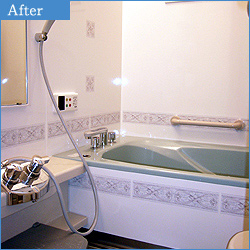 風呂釜を外に出し浴室を広く使うリフォームは、浴槽が広くなった分お客様の感動も大きいようです。