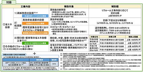 「みらいエコ住宅2026事業」の内容は以下のようになります。